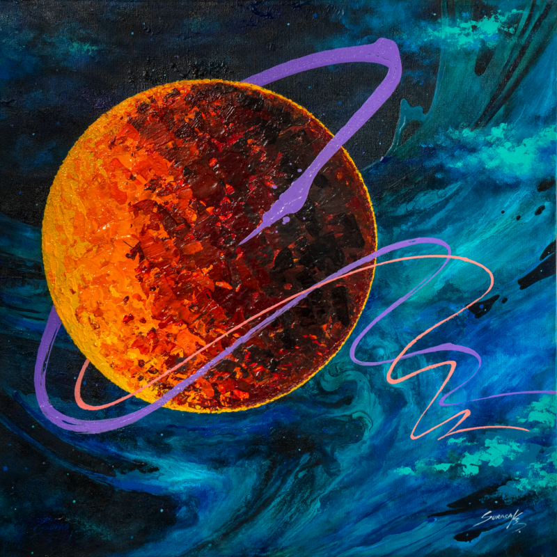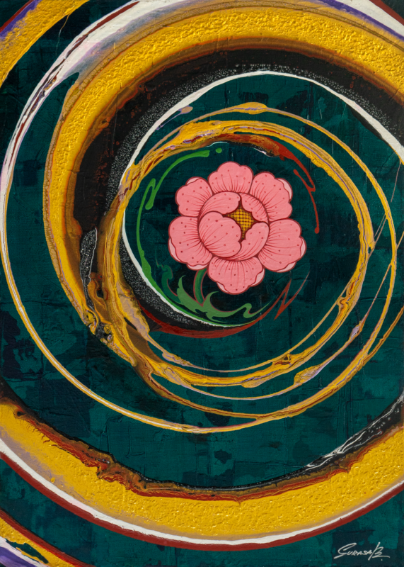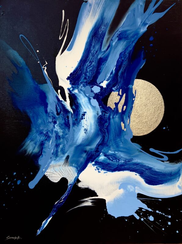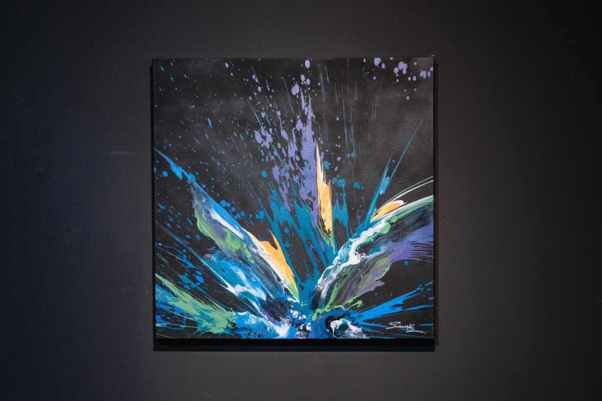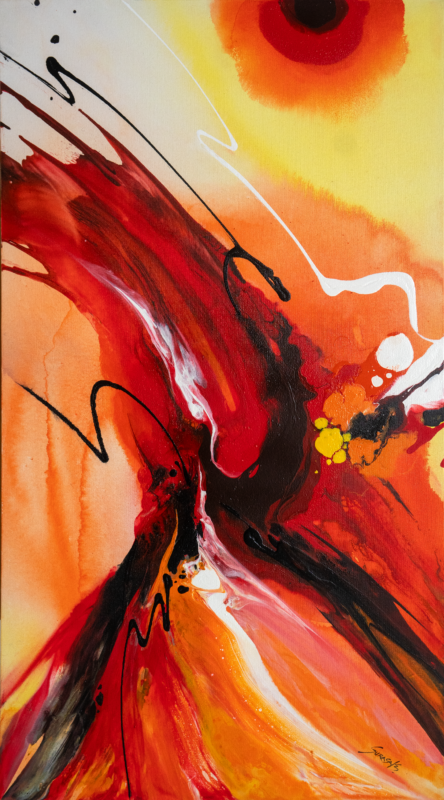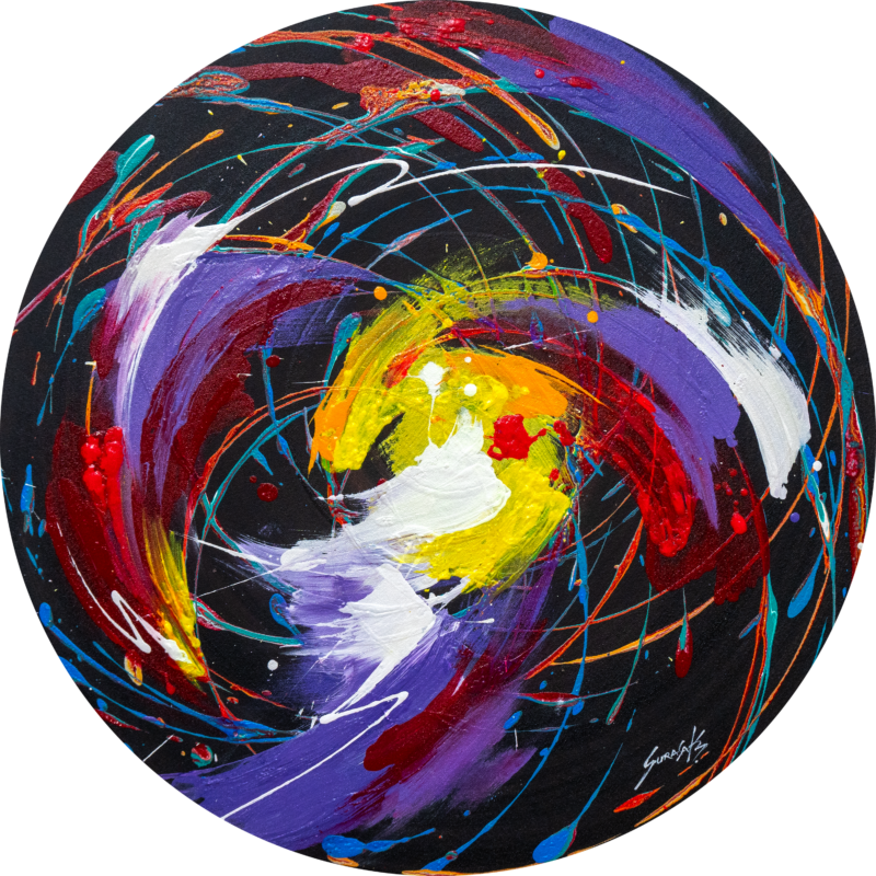 Abstract paintings on canvas created with acrylic paint. Rather than realistic depictions, these works use dazzling techniques and primary colors to create outstanding compositions that spark imagination and bring enjoyment to art collectors.