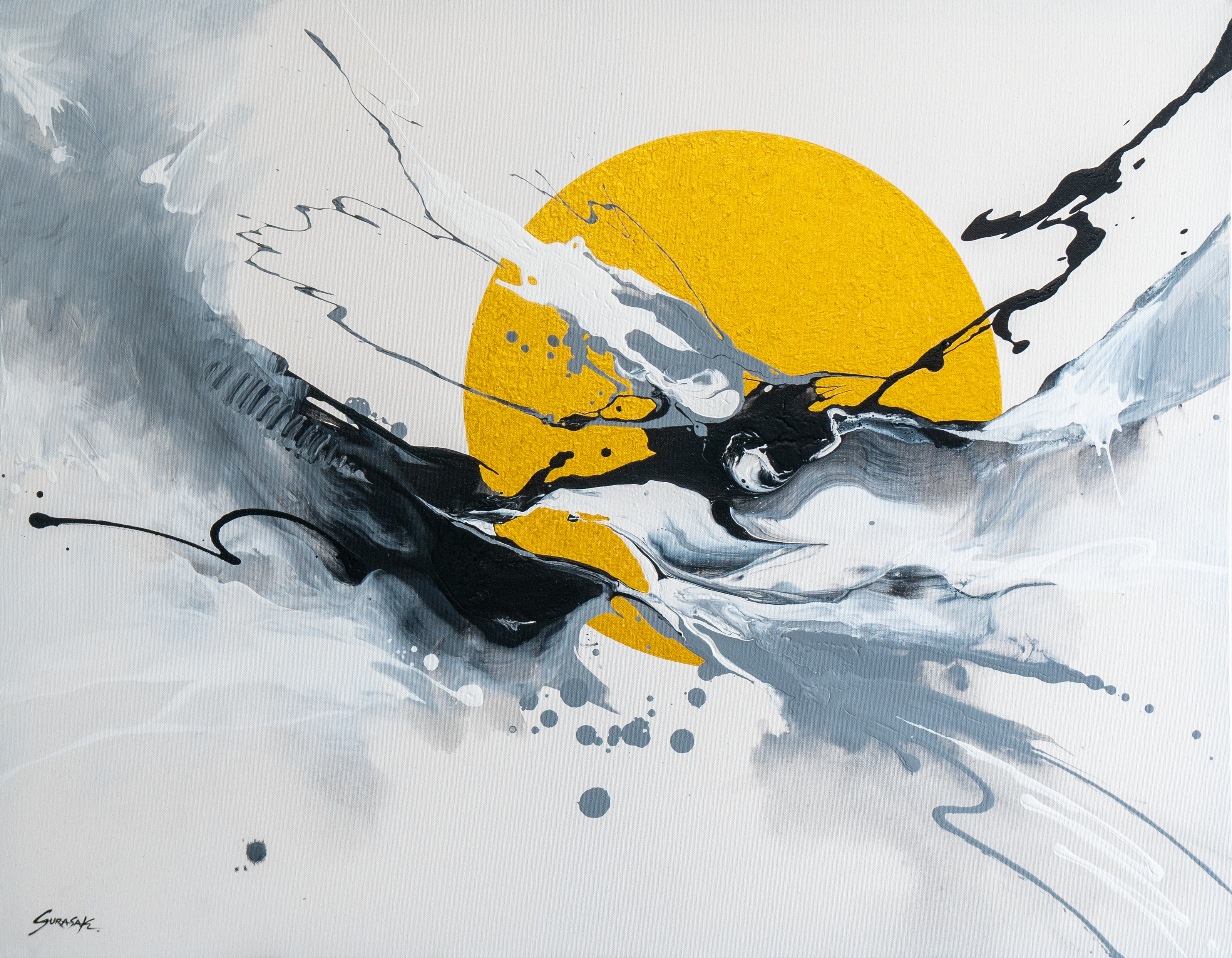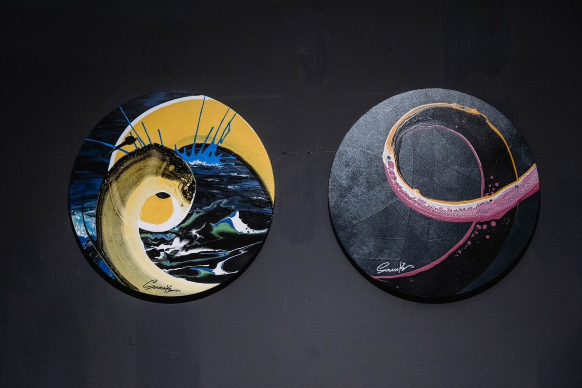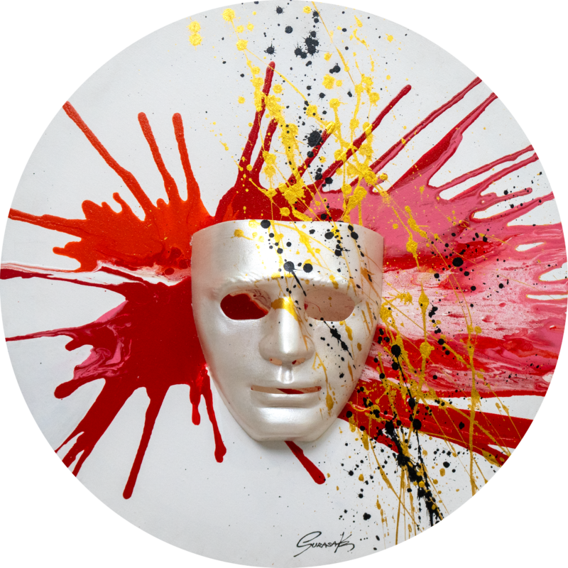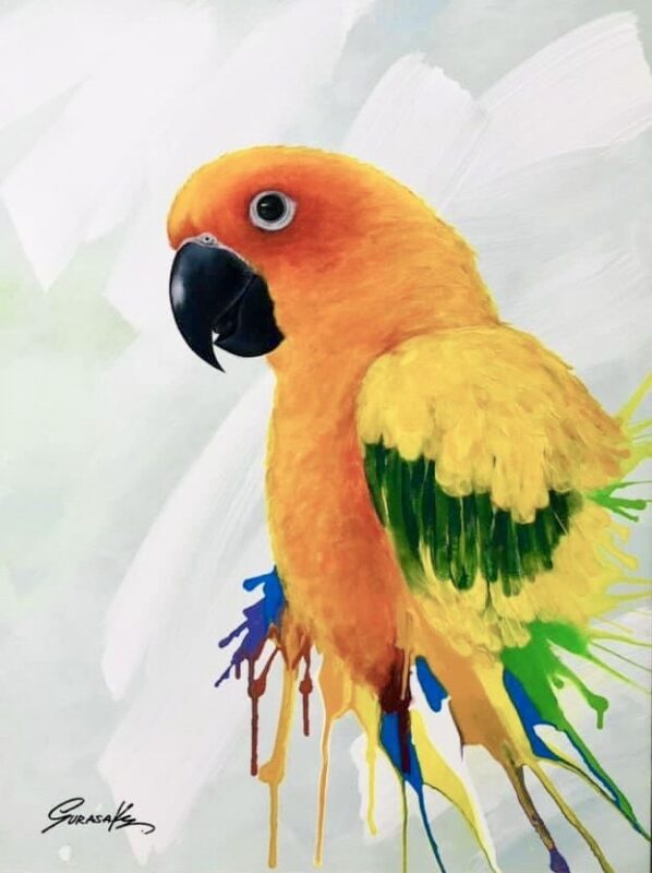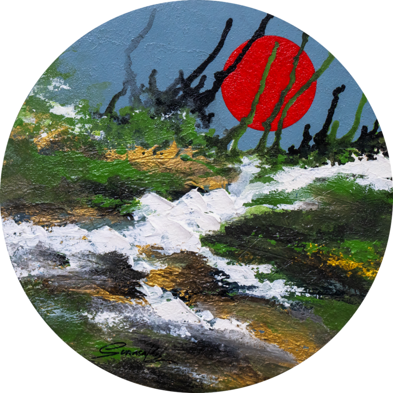 Abstract paintings on canvas created with acrylic paint. Rather than realistic depictions, these works use dazzling techniques and primary colors to create outstanding compositions that spark imagination and bring enjoyment to art collectors.
